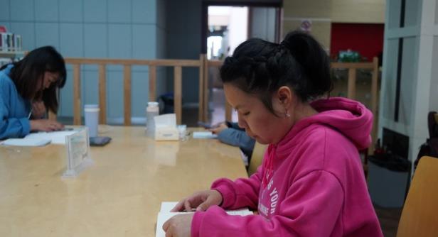 11月21日,云南师范大学老挝留学生莎蜜在图书馆学习。新华社记者 姚兵 摄