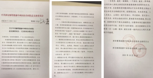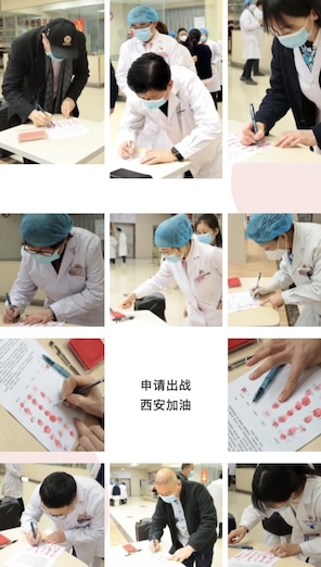 生命重于泰山,疫情就是命令。党总支倡议书发出后,能康医院各科室医务人员纷纷提交《请战书》,自愿加入到抗疫一线的队伍中去,坚决做到“听党指挥,若有战,召必回,战必胜”,发扬无私无畏的职业精神,勇往直前,不怕困难,为守护西安贡献自己的力量!