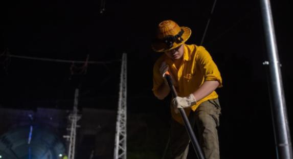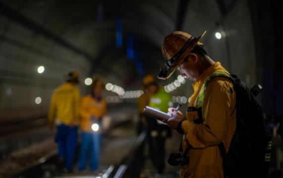 中国铁路昆明局集团普洱基础设施段员工对基础设施进行维护保养(6月1日摄)。新华社记者 江文耀 摄