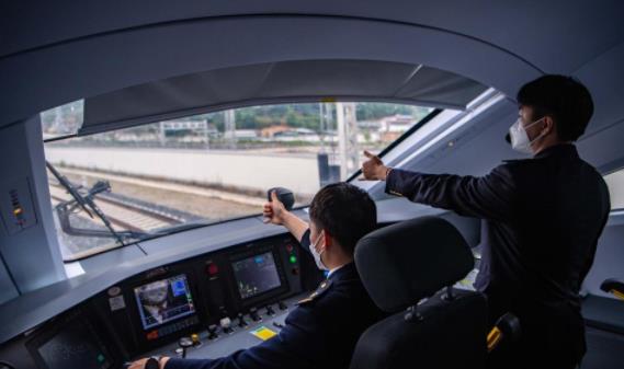 列车司机驾驶复兴号列车行驶在中老铁路上(6月1日摄)。新华社记者 江文耀 摄