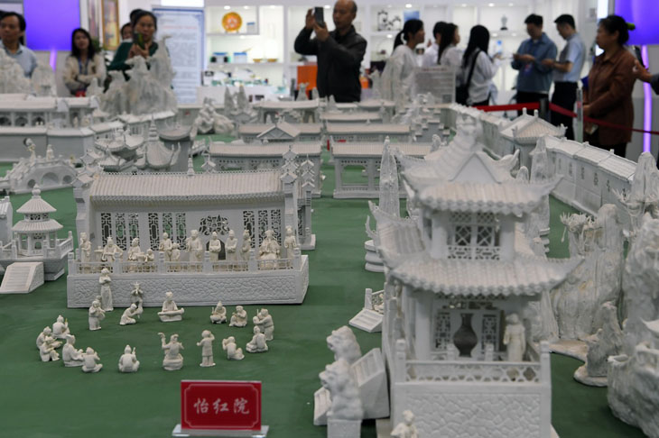 10月18日,人们在瓷博会现场欣赏展品《瓷造大观园》。新华社记者 马宁 摄
