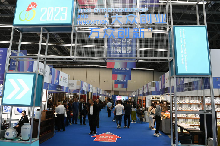 10月18日拍摄的瓷博会大众创业万众创新展区。新华社记者 马宁 摄