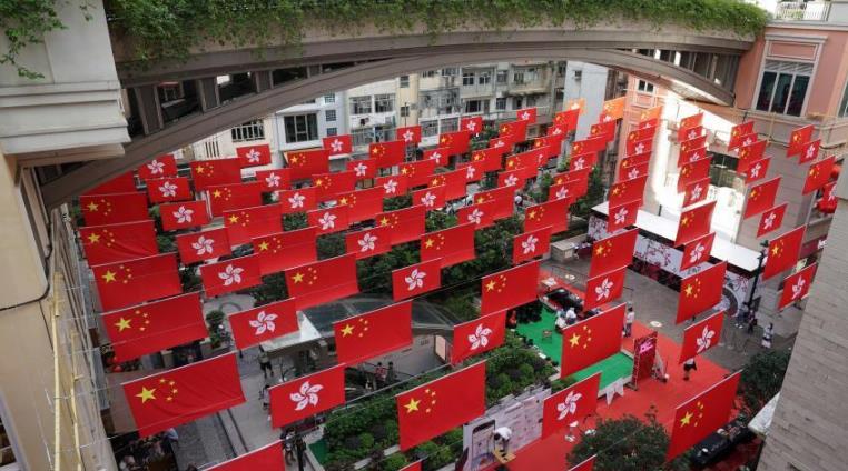 国庆节将至 香港利东街首次出现壮观“旗海”
