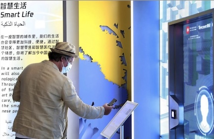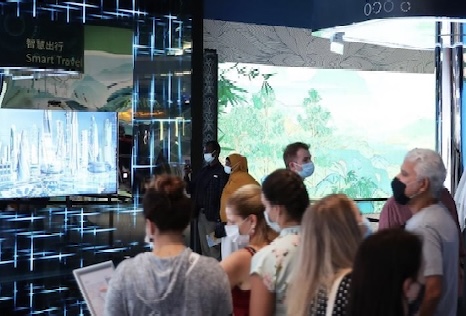 1月10日,游客在阿拉伯联合酋长国迪拜世博会中国国家馆内体验“智慧社区”。