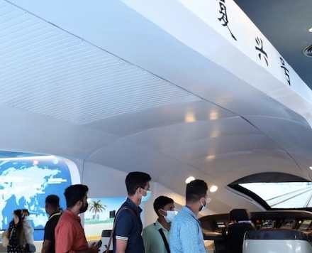 1月10日,游客在阿拉伯联合酋长国迪拜世博会中国国家馆内参观。