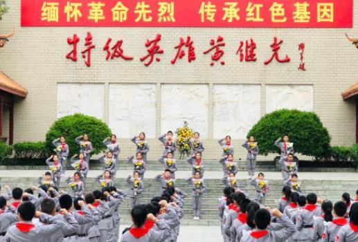 3月29日,四川省中江县黄继光红军小学学生缅怀烈士。清明将至,人们来到烈士陵园,或通过英烈网,祭奠和缅怀先烈。新华社发(肖开丰摄)