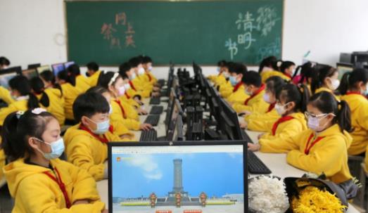 4月1日,安徽省淮北市首府实验小学学生通过网络祭英烈。清明将至,人们来到烈士陵园,或通过英烈网,祭奠和缅怀先烈。新华社发(万善朝 摄)